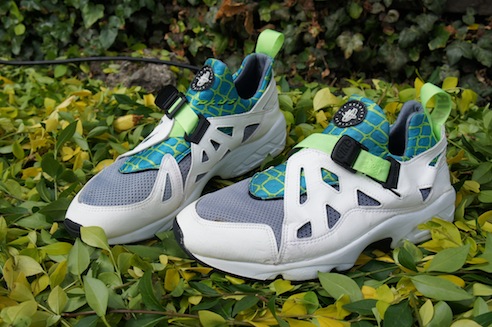 Ok I’m not saying a lot about these but these were truly a grail for me. I love these shoes. I remember one of my best friends who had a pair of these and I was always like whoah those are crazy. Released way back in 1993 for me this shoe had some of the finest Nike tech touches on a shoe at the time from the Huarache sock with that green Spider Man-esque pattern to the crossover strap, these were always bangers for me. So I hunted and hunted – I once saw a pair when Sports and Things was closing down but they were battered and the leather was crumbling. But then I found this pair on ebay from a US seller – we had a little beef because he tried to overcharge me badly on the postage after I paid top dollar for the shoes but we worked it out and when they arrived……whoah I was so happy to have landed a pair.