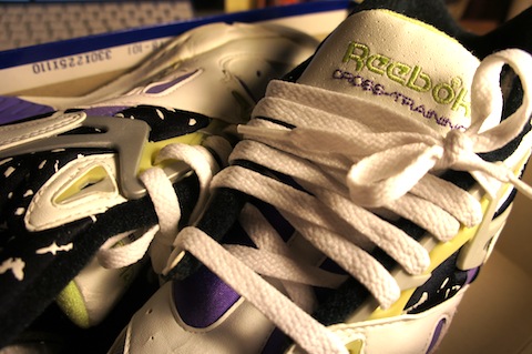 Thought I’d hit you with another pair of Reeboks today this time the Reebok Graphlite pro part of the Reebok Cross Training range. I just love the colours on these that dazzling white with the purple and the black and white on the ankle, all complete with Reebok’s Hexalite technology in the sole. Tags still on after what’s happened to some other pairs kinda scared to wear these.