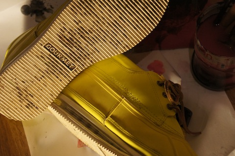 Ok so I am a huge Gourmet fan and I was blown away when they came onto the scene with the Quadici and copped a pair in black with the white sole straight away. They definitely changed the game with the Quadici and have been doing so for while now with their shoes. Just love how they took the duck boot silhouette and hit it with an almost Nike Cortez sole and the air bubble. Real creative thinking. So nuff props to the folks at Gourmet. Since then I’ve picked up a bunch of Quadicis and a load of other pairs too. I have fond memories of getting this colourway that as far as I know was never released from a Gourmet sample sale. A good friend and I hit a sample sale in London and came out with a massive cardboard box with about 20 pairs in it!
