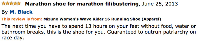 What brings this story to The Word on the Feet is that there has been much buzz on the internet about the kicks that Wendy was wearing the above Mizuno Wave Rider 16. No Jordans or Lebrons here but just the kinda kicks that you can wear for 10 hours whilst you’re doing your best to kick a bill that you believe should not come to pass into touch. And a determined Wendy Davis in her Mizunos will I’m sure do everything that she can to keep kicking that bill out this week.