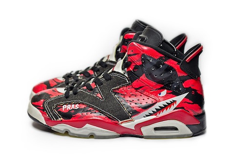 And that’s exactly what has happened here as back comes SBTG to drop the Nike Urban Tiger pack in conjunction with his protege Pras from SBTG Art Academy fame and clothing brand Monarchii and these are straight fire. On the Air Jordan 6, the Air Force One Low, the Dunk Hi and the Air Max we see a mix of materials including horse hair and denim – the AF1s, Dunks and 90s are just straight up dope with that orange Tony the Tiger hair. I know we’ve seen the teeth on a 90 before but the teeth here work so well with that red tiger camo. With signatures from all three – a Monarchii tongue tab, the Pras tag and of course the SBTG Arabic sig – these go very hard and prove that the creative force that is SBTG is still very capable of creating something very unique on a shoe. You can always feel the energy in a pair of SBTG kicks, hard and aggressive and that spirit of rebellion that led Ong to call himself SBTG, short for Sabotage.