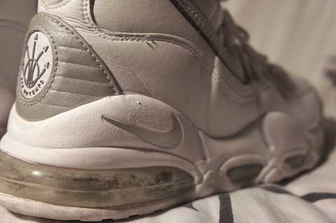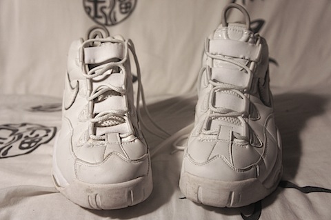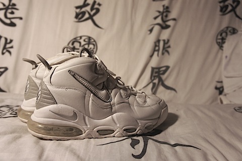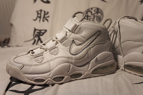 OG action here the Nike Air Max Uptempo with some serious Nike Air white on white with the fat air bubbles. Love these in the summer with shorts and some long socks. These dropped in 1998 and were part of Nike’s very popular Uptempo range for those ballers that needed that Max cushioning. Air still holding up.