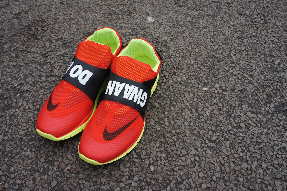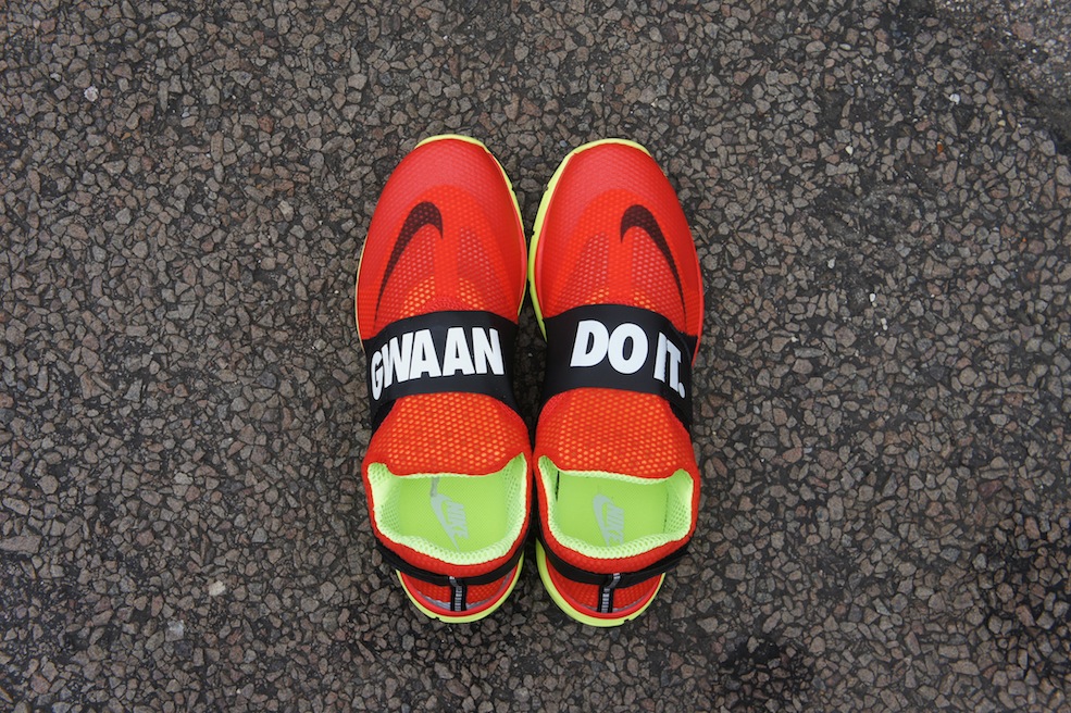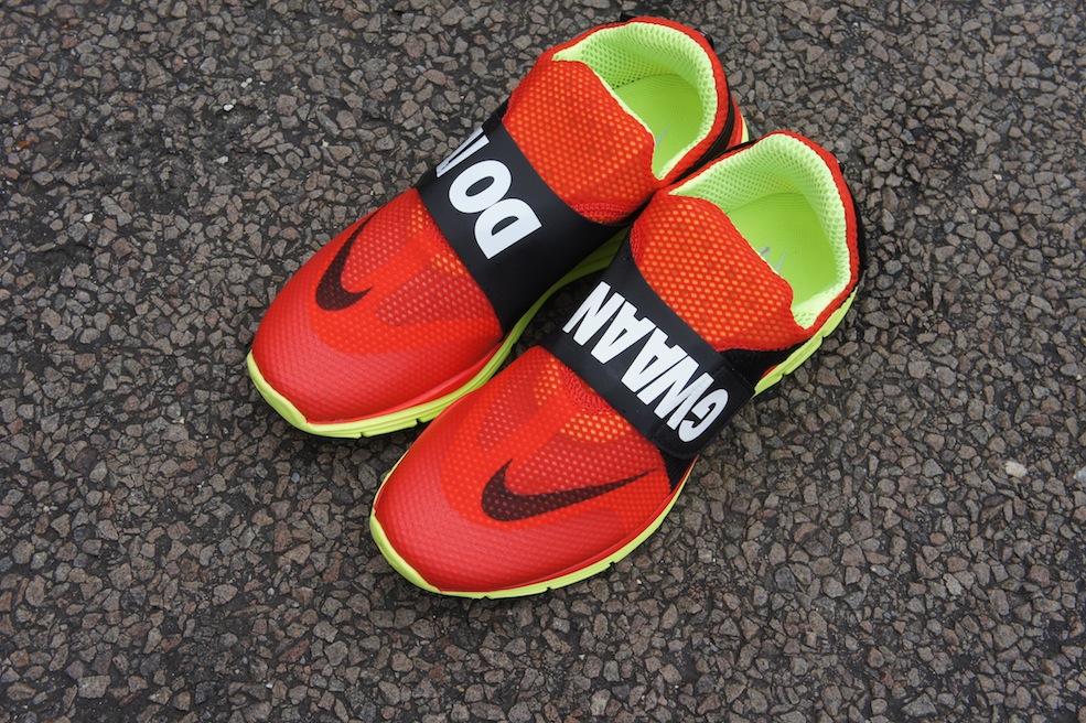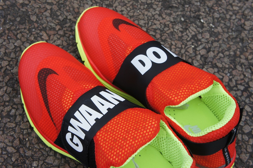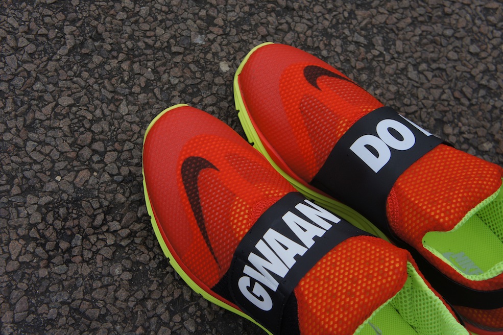 So pair 51 is something very special from the Street Weird Crew and for their first pair of kicks they have stripped the JUST from the quickstrike Nike Lunarfly 306s and replaced it with what is slowly becoming their trademark GWAAN. And it’s a very clean job indeed! Of course you know we’re very close to the Street Weird crew and it’s a very proud moment to see the GWAAN DO IT on a pair of kicks! These are just for the crew at the moment but they might be hitting another few pairs very soon.
