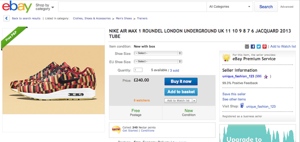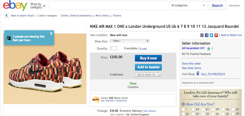 Yesterday saw the release of the roundel Air Max 2-pack paying homage to London with a make up featuring the iconic London Transport seat pattern on the uppers of both an Air Max 1 and an Air Max 90. And whilst they were a huge shout out to London and the UK, most of London and the UK couldn’t get a pair, just yesterday. And if you want a pair today you’ll have to pay double or more to all those resellers who in some cases appear to have copped a whole size run of this limited release.