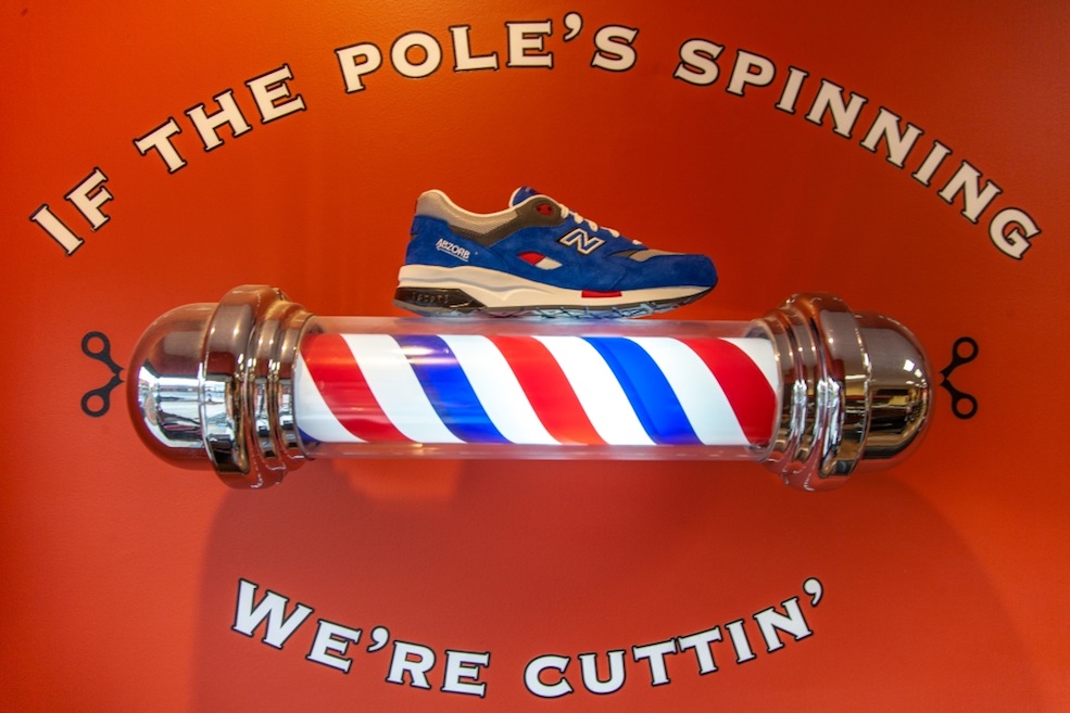 Last Thursday saw the launch of the New Balance Barbershop pack at Woodhouse in London’s Notting Hill. Pairs from the Barbershop three pack literally flew off the shelves with the heads whacking ’em on foot right there and then in the store. With a barber shop in the basement and plenty of beer and vodka was a really good launch for the pack. Check out the pics below and check the shoes, seriously quality pack and the suede on these is real lush. Get ’em before they’re gone.
