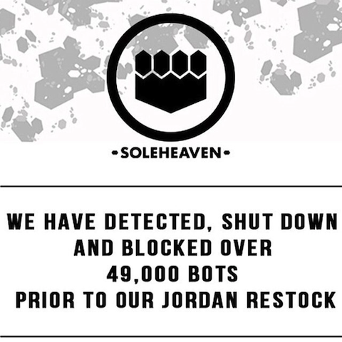 Well on Saturday Sole Heaven did a very noble thing and I honestly believe that there was no malice or lies behind their restock… And to be honest I think that all of us plugged into the matrix didn’t realise how much attention this particular restock was going to get, not even the sole heaven guys.. But as you know a restock is like a Yeezy drop and people take that ish serious. Myself the King joined in the hype and helped promote this particular restock, (cause that is the King’s thing I help the Kingdom, the community in the UK and will promote anyone who is positive and reps the UK and Europe…) This particular restock though was picked up by nearly every reputable sneaker blog or social media blog over here, Europe and the States in fact the whole world which turned this into a an internet frenzy… And boy what a frenzy this was Sole Heaven posted a Instagram picture which stated they had blocked over 49,000 bots, and for those of you who don’t know what bots are which I had multiple people asking me, bots are automatic systems designed to place an item in a cart straight away so you are kinda guaranteed a purchase, these are designed to be faster than humans so you are kinda screwed if you are a normal purchaser you have no chance…