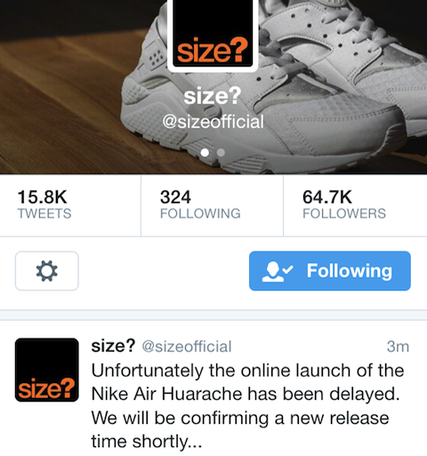 Ok so it’s Wednesday the 30th of April 2014 the time is around… er ok I forgot but I posted a picture of the white Huaraches which were dropping the next day 1st May 2014, I had only 300+ likes and 66 comments ( not including 100 plus calls and text’s lol) most people asking where could they get them, what size etc, I tried my best to answer saying everywhere,… everywhere people asked? I replied with YES every main trainer shop should have them because they are a general release? Ok so for all you guys who don’t know a GR or General Release trainer is a trainer that is released everywhere and there are loads of pairs, right?. Well this seemed to be a GR every shop did have them, but, not a lot of pairs which I figured would happen… Ok so come the morning of Thursday 1st May 2014… And there is complete and utter pandemonium the white Huaraches sold out in every shop and online store within a couple hours… Huh?