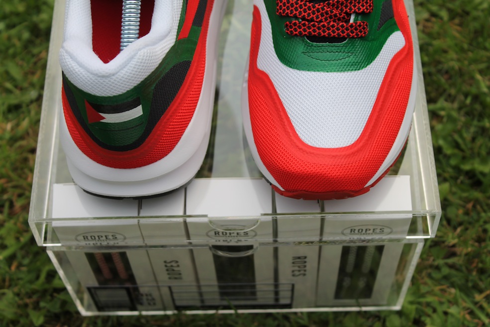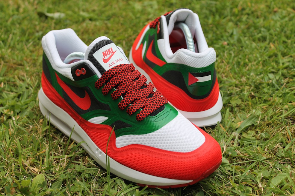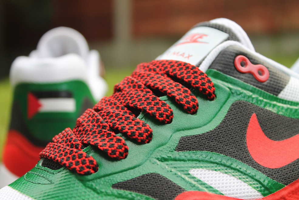 On that note we would like you to support an amazing initiative by someone that we came across via the wonders of social media Ghulam Khadki. Ghulam will be having an auction for these amazing Nike Air Max 1 Lunar customised by Foesone. 100% of the money raised will go to the Ummah Welfare Trust who will use the money raised to directly fund their relief operation on the ground in Gaza. These are definitely a one-off, check out the amazing pics below! And there’s nothing like rocking some serious heat whilst doing something for what is a very worthy cause. There are also a bunch of other goodies that have been donated including t-shirts, laces, a shoe crate so this is a really great auction for a really great prize.