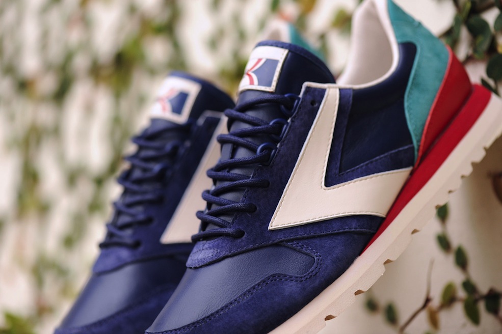 We’re talking a high-grade leather and pigskin suede upper. The colour combos of navy, green, and red are a nod to the varsity colourways of the Brooks Heritage Collection and the home field team, the Seattle Seahawks. The “Centennial” features some nice details with that heat-debossing on the heel, a retro logo on the tongue, as well as the BAIT and Brooks link-up reflected on the insoles.