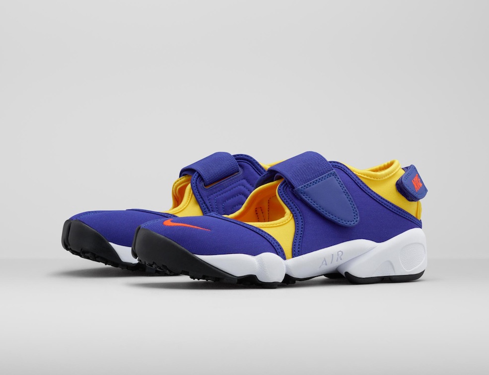 In 1996, Nike Running quietly made its first foray into footwear promoting natural motion with the introduction of a sneaker/sandal hybrid called the Nike Air Rift that became something of a classic. That unique split-toe design and stretchy fit and all round comfort made this quite strange looking shoe an everyday go to sneaker.