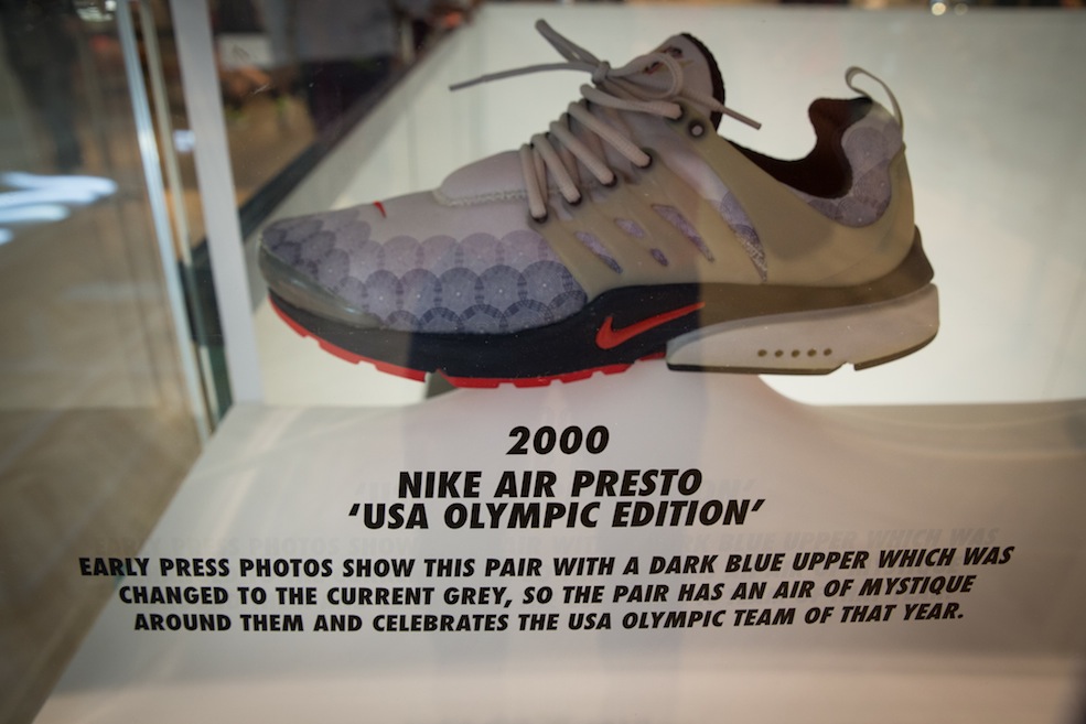 LW: There is an amazing retrospective on the Presto with ten pairs from my collection being displayed down here in ‘The Cube’. Nike asked me to send the pairs that had the most significance to me, a story and a meaning, for a little exhibition here in ‘The Cube’.