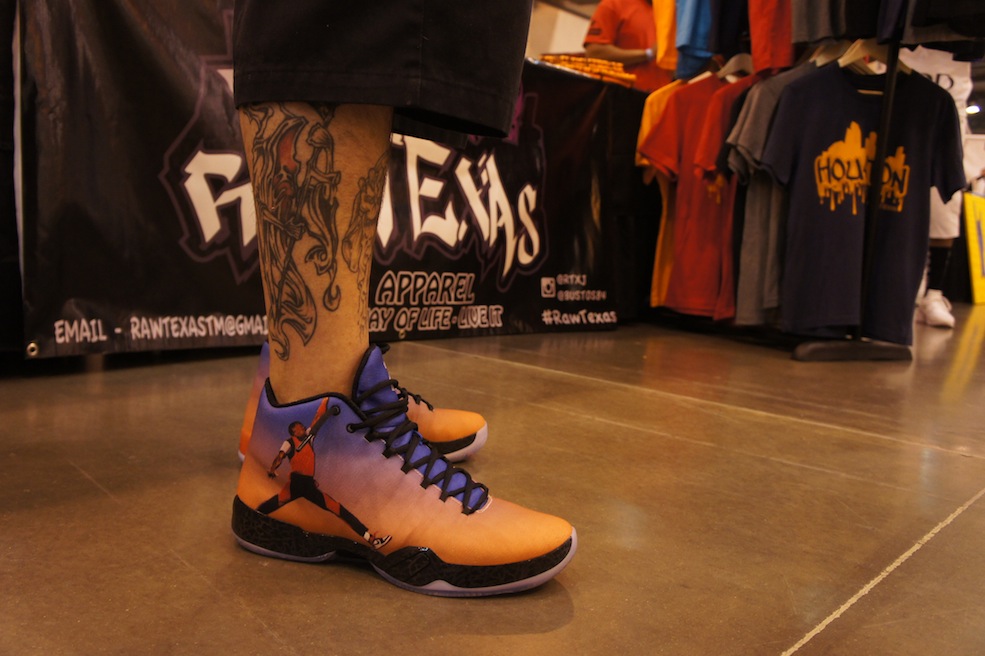 In short we had a great time! There was just a great vibe throughout. Sponsored by Sheikh shoes, Crep Protect, Crooks and Castles, Houston’s The Beat 93.7 were also in the building alongside a bunch of heat sellers, independent clothing brands, folks with amazing key rings, sole protectors, sneaker cleaning products, sneaker art, sneaker storage. The attendees had that heat too and here were permitted to bring pairs with them for sale or trade so there was a crazy trading area and all around the massive venue there were sneakerheads young and old with shoes in their hands, in the air, crazy crazy vibe. Slim Thug was in the building as was Trae the Truth rolling around on a Gator-skinned segway.