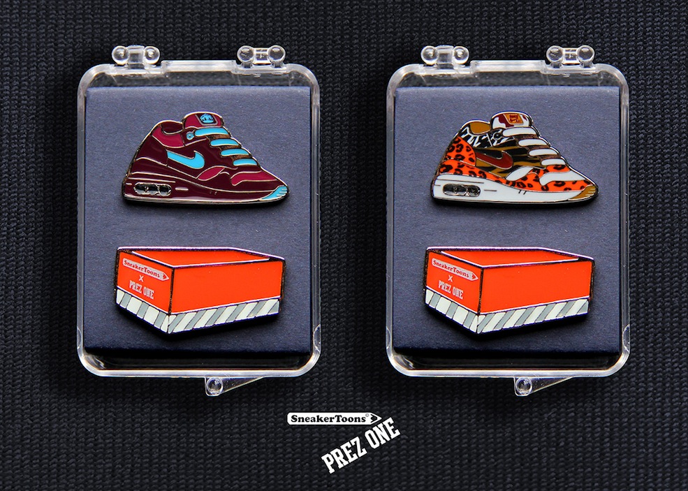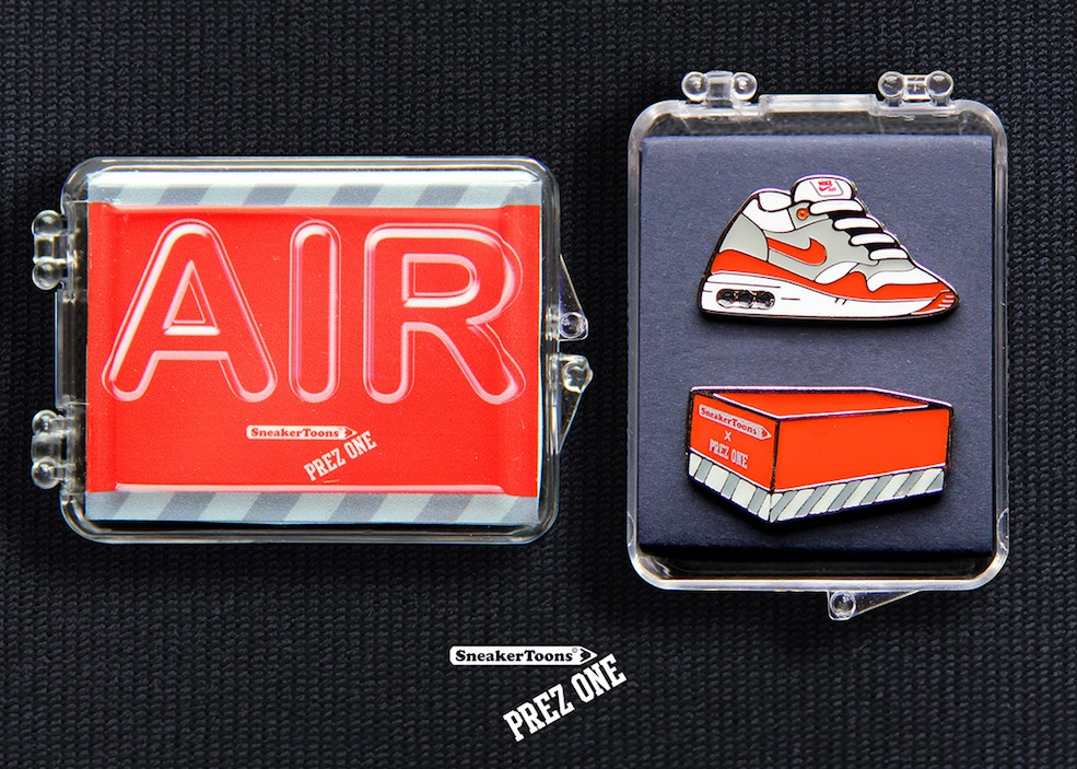 More Avant Garde than the Pompidou centre Gary (AKA Prez_One) lives up to his innovative reputation and does justice to Tinker’s dream, and the creative duo offer us a dope 2-pack comprising of the SneakerToon AirMax One and accompanying vintage sneaker box. These sets of limited edition, numbered pins are seriously dope. All hand crafted and containing…..pause for air……. a transparent bubble! Yes thats right….a transparent air bubble!!!!