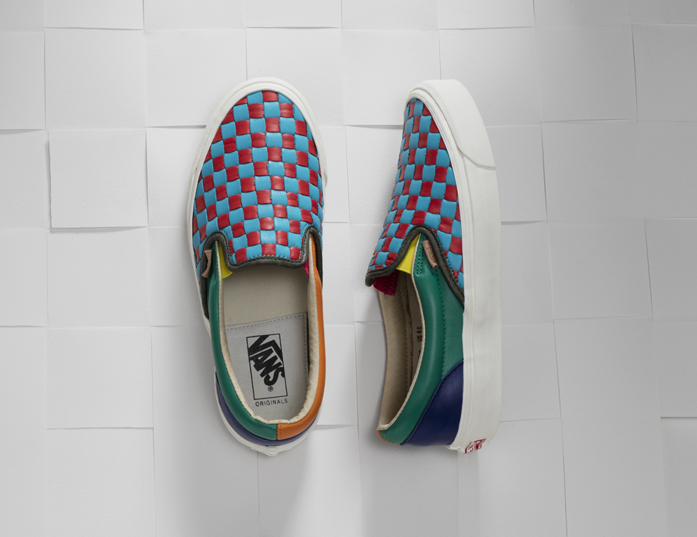 Vans honour the iconic checkerboard and the 50th birthday of the brand by reinterpreting the coveted motif in the limited edition “Checkered Past” collection. Launching through Vans’ premium label, Vault by Vans, this deluxe 10-piece assortment expresses the iconic pattern as handwoven leather craftsmanship across footwear and accessories.