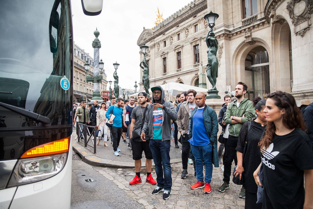 Next we hit some of Paris’ sneaker spots with Footlocker to check out some of the season’s key sneakers before heading to the Paris Opera House itself for more food and drinks – the wows just kept coming and those desserts…oooh lala! Then it was off to the sick Palais de Tokyo for the main event and what an amazing venue. Stairs took us underground to an adidas wall with all our names on it then further deeper underground where the walls had street art from such big names as Futura. And into the main arena where we saw the triple black Tubular Invader strap for the first time in the flesh, and we drunk and danced until the very end!